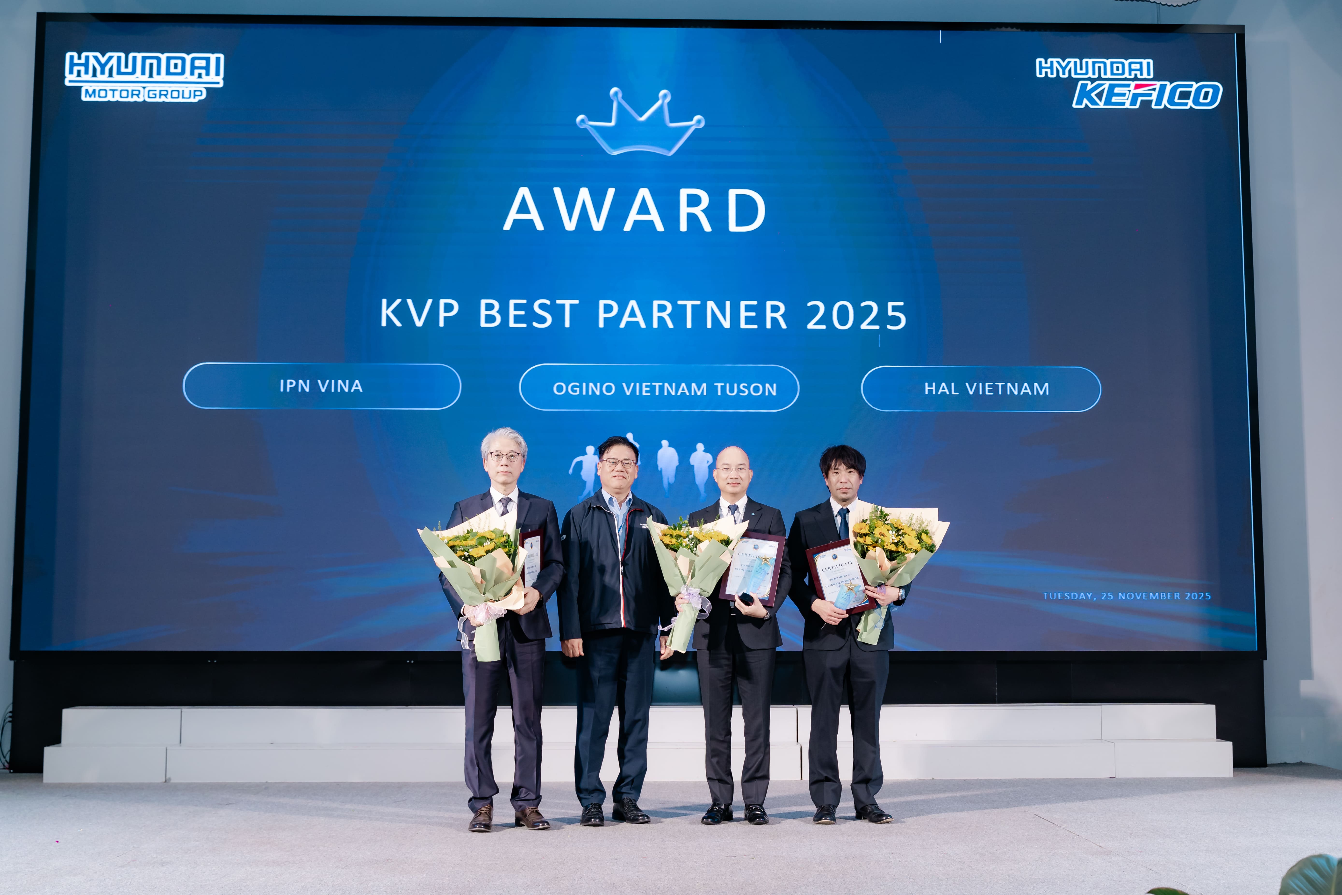 Giải thưởng “KVP Best Partner 2025” là danh hiệu thường niên của HYUNDAI KEFICO VIỆT NAM nhằm tôn vinh các Nhà cung cấp có thành tích vượt trội trong năm. Điểm đánh giá được xét duyệt theo bốn tiêu chí nghiêm ngặt: