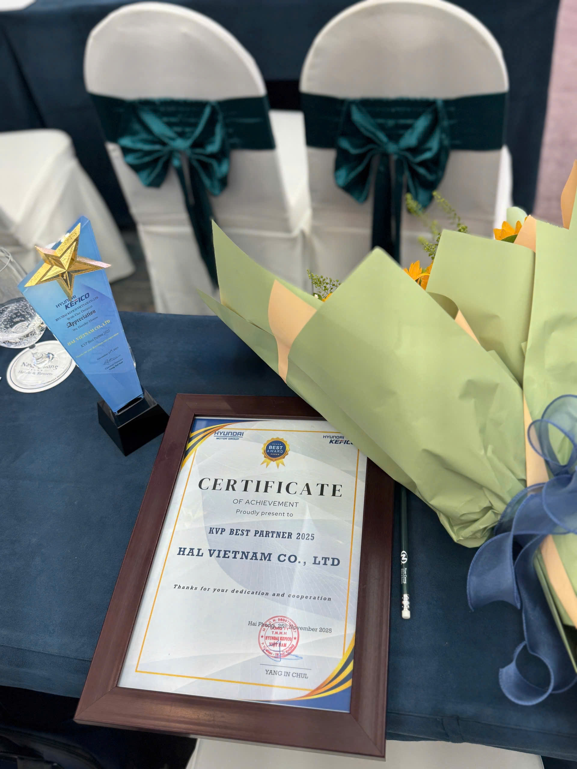 Trong tổng số 39 Đối tác tiêu biểu được đề cử và mời tham dự sự kiện, HAL Việt Nam là một trong ba Nhà cung cấp xuất sắc nhất được xướng tên trên bục vinh danh. Tổng Giám đốc HAL Việt Nam – Ông Nguyễn Hữu Bách đã thay mặt Công ty nhận giải thưởng từ Tổng Giám đốc HYUNDAI KEFICO VIỆT NAM – Ông Yang In Chul.