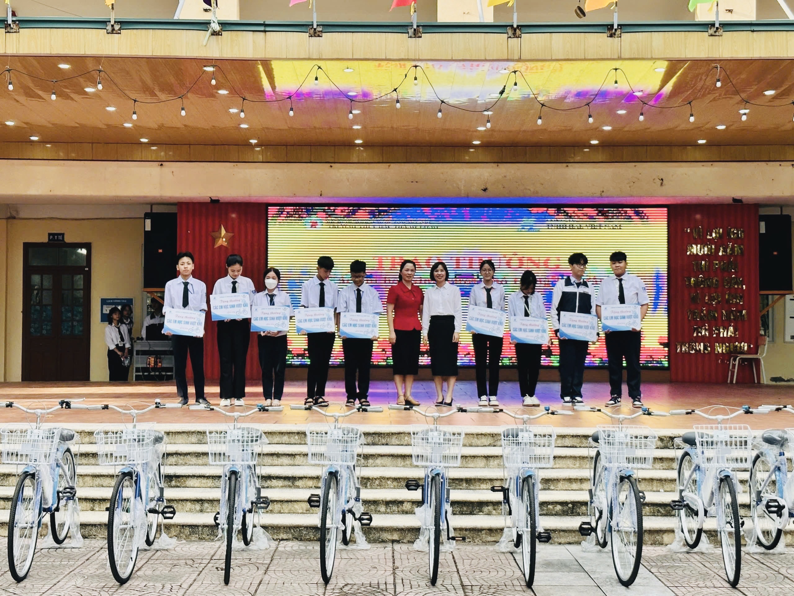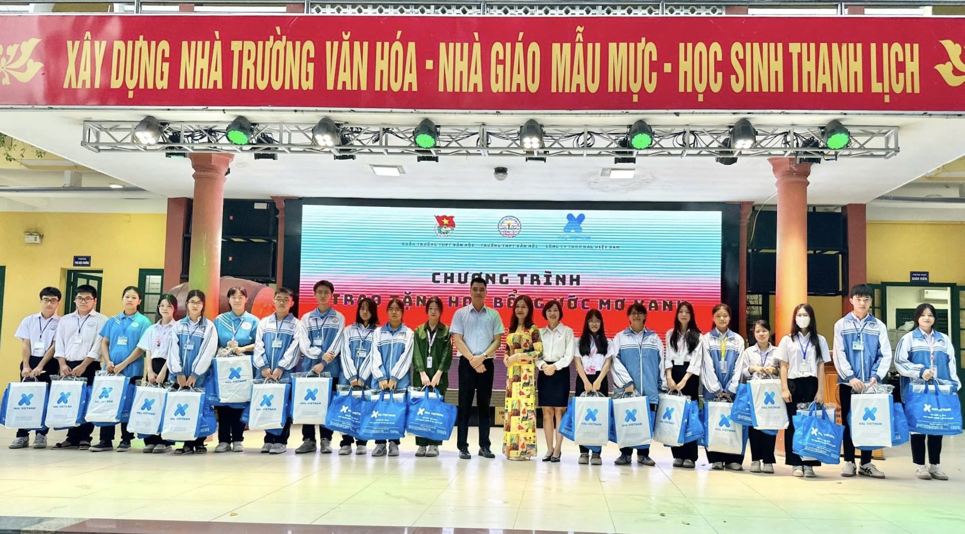 Tiếp đến tại trường THPT Vân Nội, những món quà nhỏ yêu thương dành cho các em học sinh vượt khó đã được trao tặng. Những món quà tuy nhỏ nhưng vô cùng ý nghĩa và thiết thực, từng món đồ sẽ theo các em trong suốt hành trình đến trường, bảo vệ các em và hỗ trợ các em trong học tập.