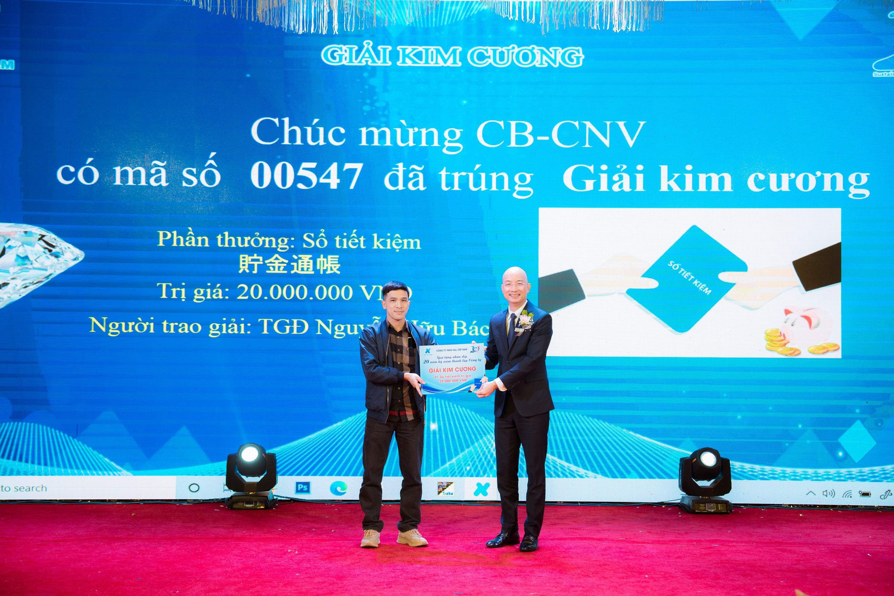 Không khí buổi Lễ còn sôi động hơn nữa trong phần quay số trúng thưởng, rất nhiều các phần quà tặng đã được trao tặng đến những người may mắn trong buổi tiệc. Với mong muốn thật nhiều Cán bộ Công nhân viên được nhận quà trong Lễ kỷ niệm, Công ty đã có những quyết định đặc biệt để nhân đôi, thậm trí nhân ba niềm vui cho tập thể Cán bộ Công nhân viên trong phần quay số trúng thưởng.