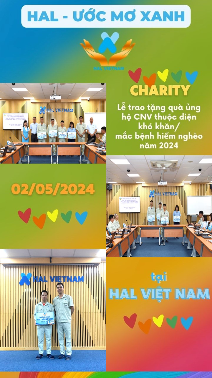 Phát huy tinh thần tương thân tương ái, ngày 02/05/2024, trong không khí ngập tràn yêu thương, Quỹ Thiện nguyện “HAL - Ước Mơ Xanh” đã tổ chức buổi Lễ trao tặng quà ủng hộ cho Công nhân viên thuộc diện khó khăn/mắc bệnh hiểm nghèo. Đây là hoạt động ý nghĩa đánh dấu bước đi đầu tiên trên hành trình thiện nguyện của Quỹ.